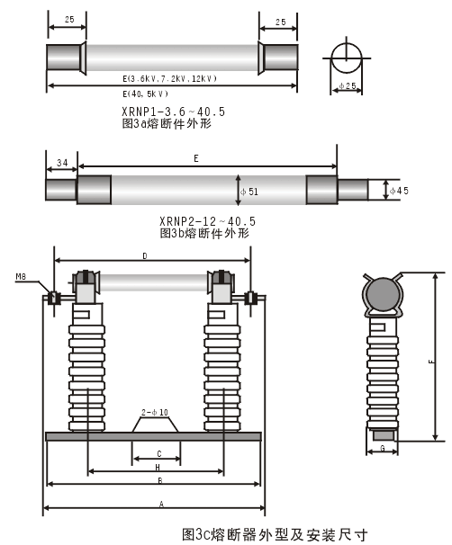 熔斷器的外型及安裝尺寸如( 圖3)和表2所示
