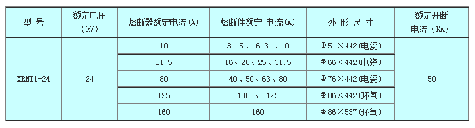 熔斷器的基本參數(shù)如表