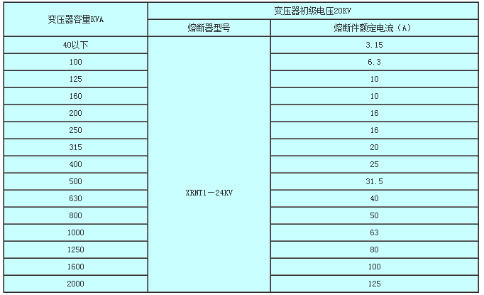 注:對(duì)于變壓器為7.2kV時(shí)的選用及與其它電力設(shè)備配合的選用可與制造單位聯(lián)系。